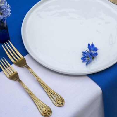If it’s essential you use white crockery, why not spice your table setting up with luxurious cutlery. Adding gold or black cutlery can add a contemporary touch to the traditional occasion of afternoon tea.